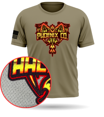 design is printed on film and heat-pressed onto the fabric
